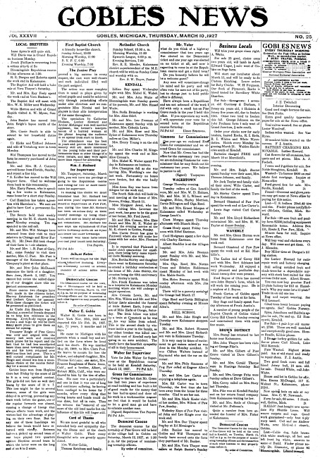 Gobles news. Vol. 37 no. 25 (1927 March 10)