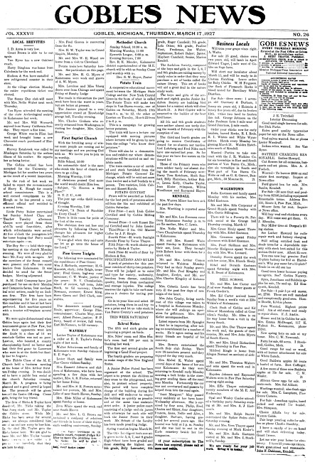 Gobles news. Vol. 37 no. 26 (1927 March 17)