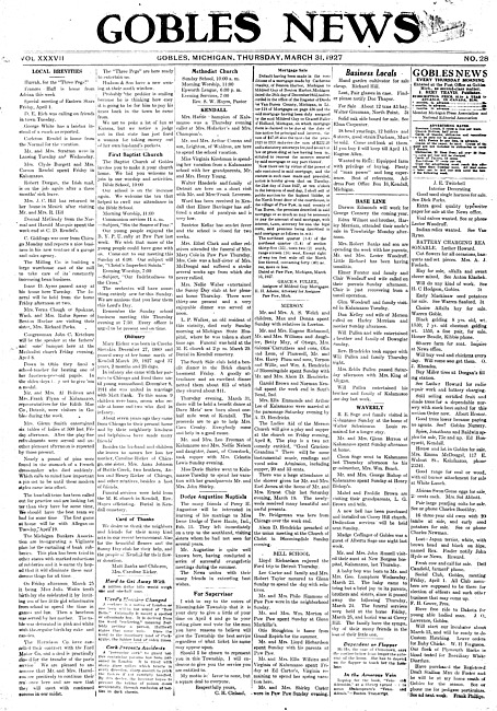 Gobles news. Vol. 37 no. 28 (1927 March 31)