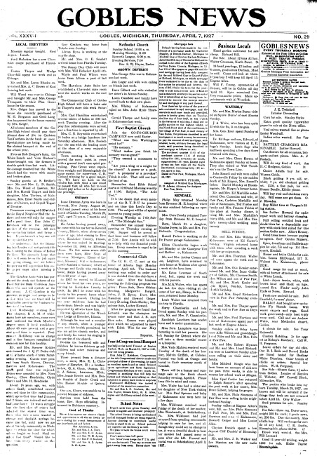 Gobles news. Vol. 37 no. 29 (1927 April 7)