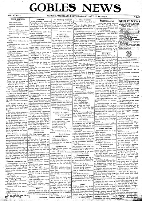 Gobles news. Vol. 38 no. 19 (1928 January 26)