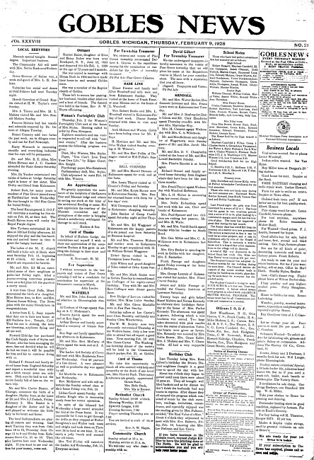 Gobles news. Vol. 38 no. 21 (1928 February 9)
