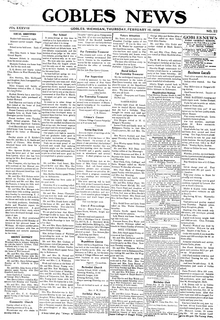 Gobles news. Vol. 38 no. 22 (1928 February 16)