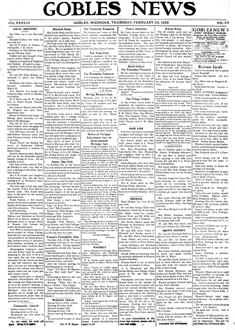 Gobles news. Vol. 38 no. 23 (1928 February 23)