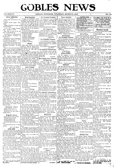 Gobles news. Vol. 38 no. 25 (1928 March 8)