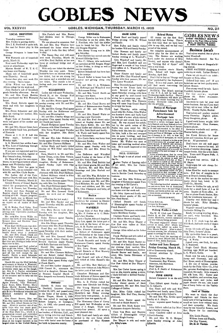 Gobles news. Vol. 38 no. 26 (1928 March 15)
