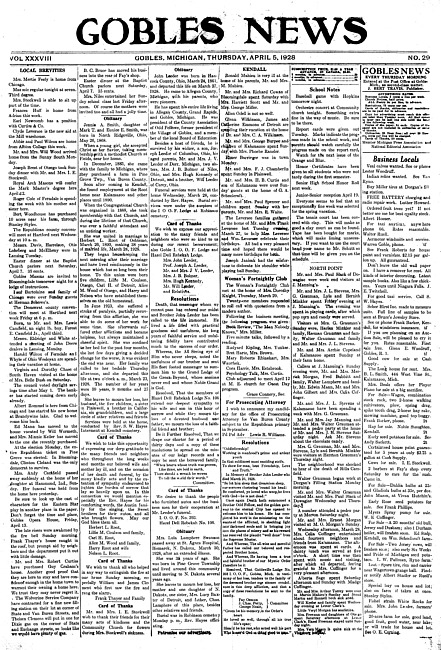 Gobles news. Vol. 38 no. 29 (1928 April 5)