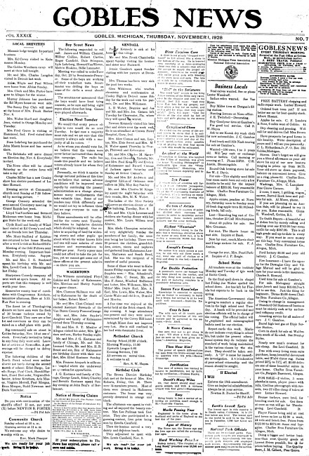 Gobles news. Vol. 39 no. 7 (1928 November 1)