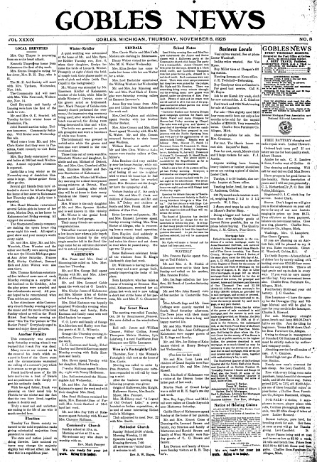Gobles news. Vol. 39 no. 8 (1928 November 8)
