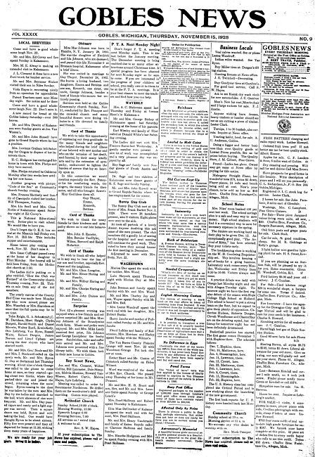 Gobles news. Vol. 39 no. 9 (1928 November 15)