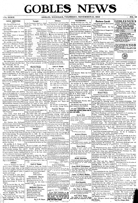 Gobles news. Vol. 39 no. 10 (1928 November 22)