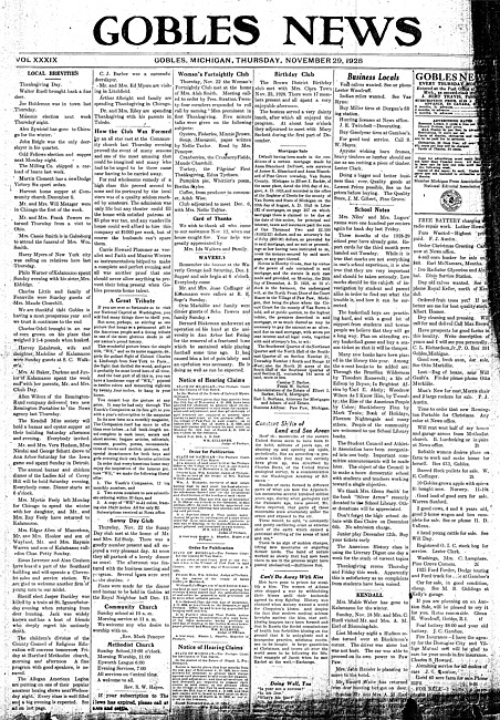 Gobles news. Vol. 39 no. 11 (1928 November 29)