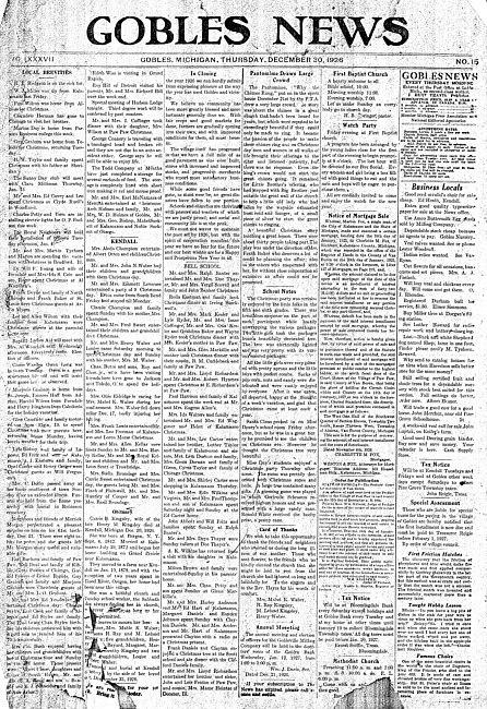 Gobles news. Vol. 37 no. 15 (1926 December 30)