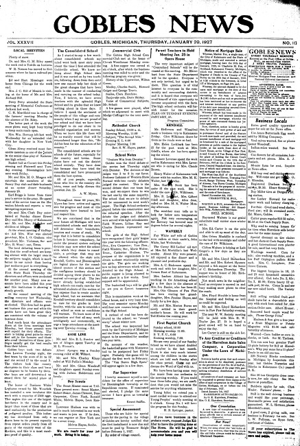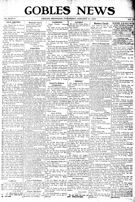 Gobles news. Vol. 37 no. 19 (1927 January 27)