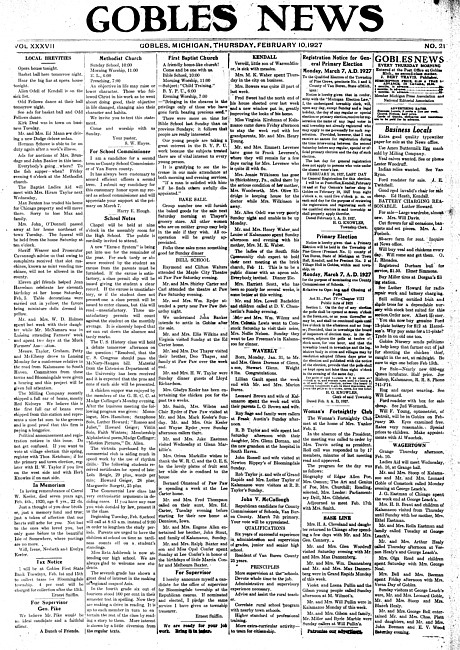 Gobles news. Vol. 37 no. 21 (1927 February 10)