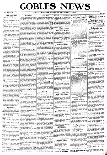 Gobles news. Vol. 37 no. 22 (1927 February 17)