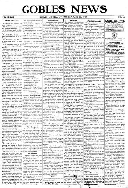 Gobles news. Vol. 37 no. 40 (1927 June 23)