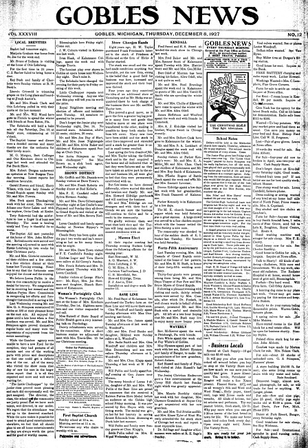 Gobles news. Vol. 38 no. 12 (1927 December 8)