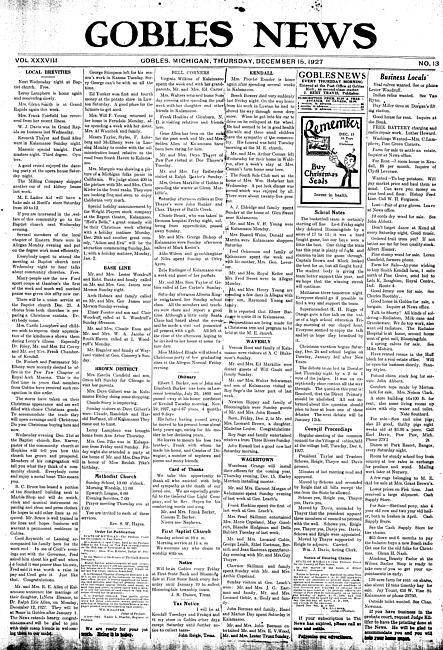 Gobles news. Vol. 38 no. 13 (1927 December 15)
