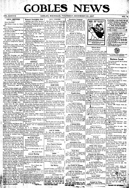 Gobles news. Vol. 38 no. 14 (1927 December 22)