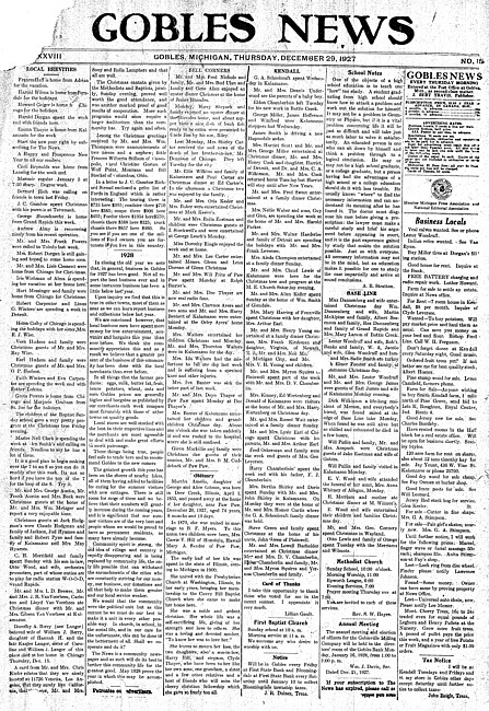 Gobles news. Vol. 38 no. 15 (1927 December 29)