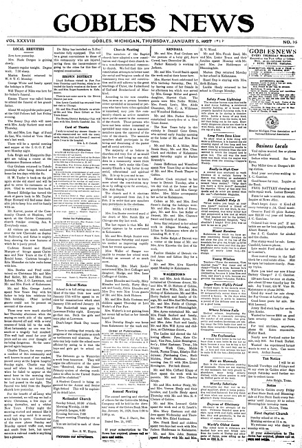 Gobles news. Vol. 37 no. 16 (1927 January 6)
