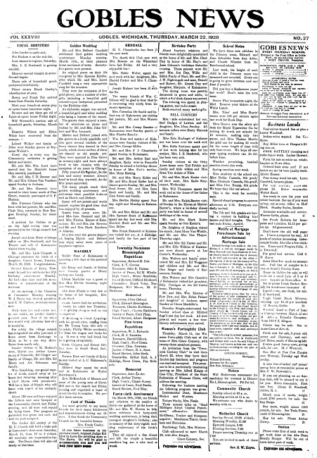 Gobles news. Vol. 38 no. 27 (1928 March 22)