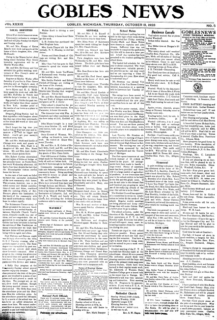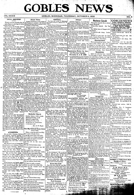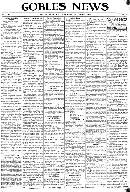 Gobles news. Vol. 39 no. 4 (11 October 1928)
