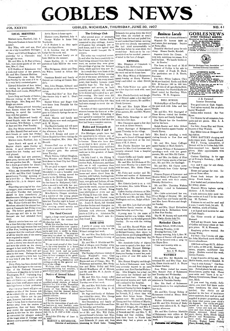 Gobles news. Vol. 37 no. 41 (1927 June 30)