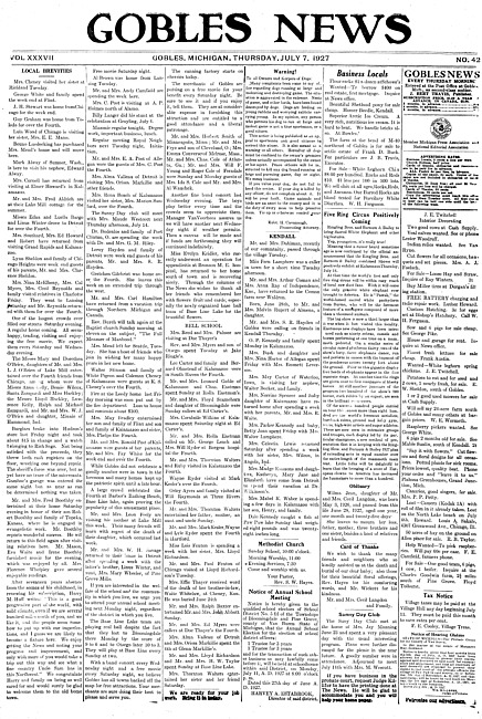 Gobles news. Vol. 37 no. 42 (1927 July 7)