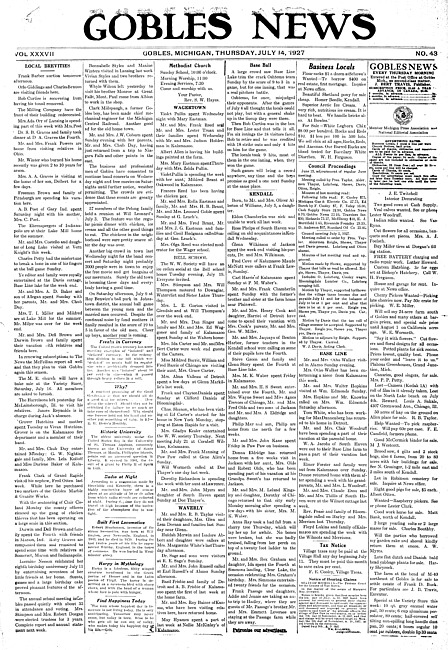 Gobles news. Vol. 37 no. 43 (1927 July 14)