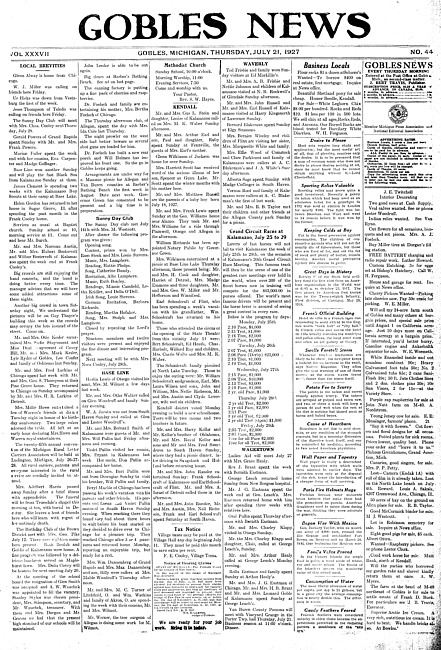 Gobles news. Vol. 37 no. 44 (1927 July 21)