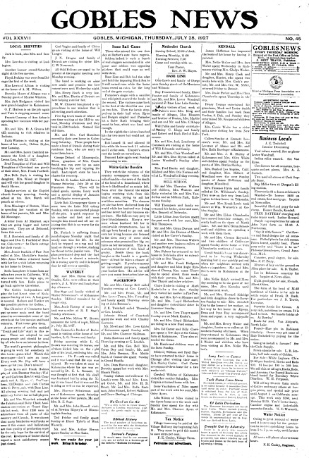 Gobles news. Vol. 37 no. 45 (1927 July 28)