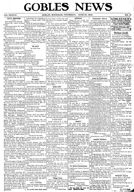Gobles news. Vol. 38 no. 41 (1928 June 28)