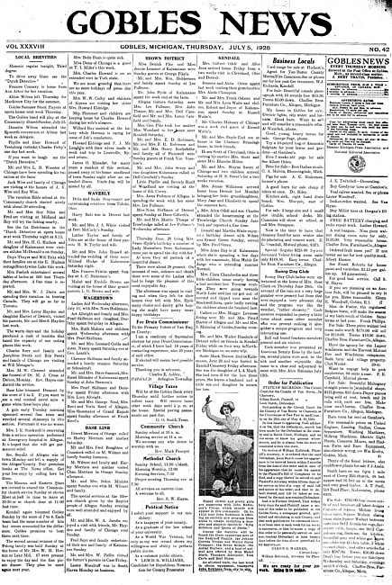 Gobles news. Vol. 38 no. 42 (1928 July 5)