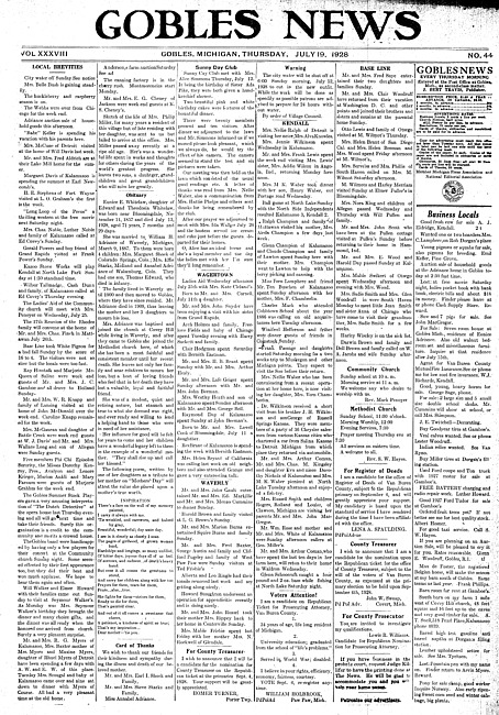 Gobles news. Vol. 38 no. 44 (1928 July 19)