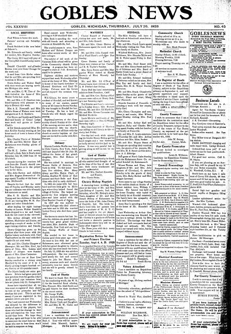 Gobles news. Vol. 38 no. 45 (1928 July 26)