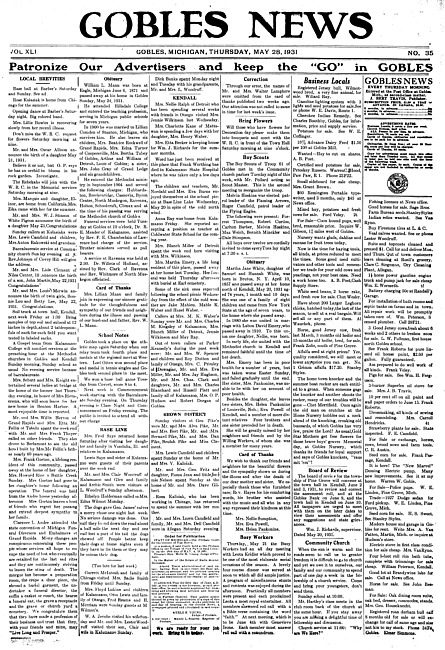 Gobles news. Vol. 41 no. 35 (1931 May 28)