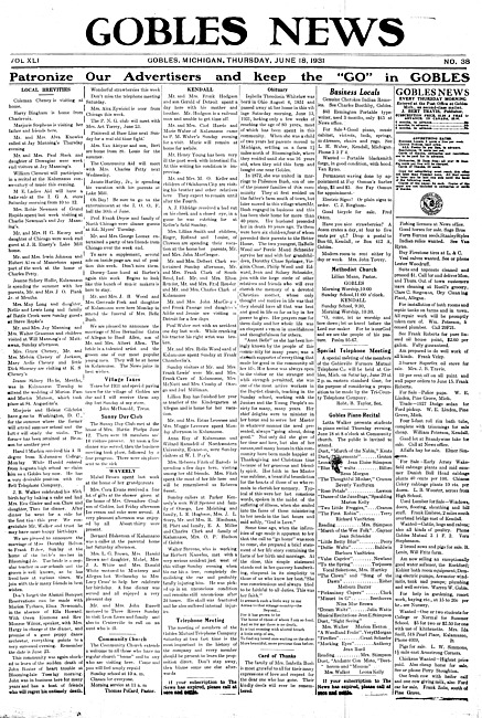 Gobles news. Vol. 41 no. 38 (1931 June 18)