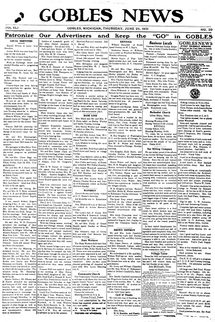 Gobles news. Vol. 41 no. 39 (1931 June 25)