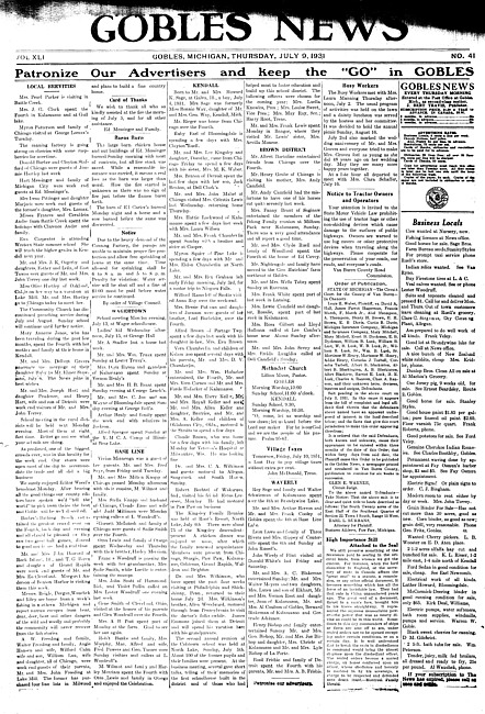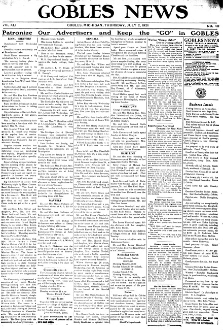 Gobles news. Vol. 41 no. 40 (1931 July 2)