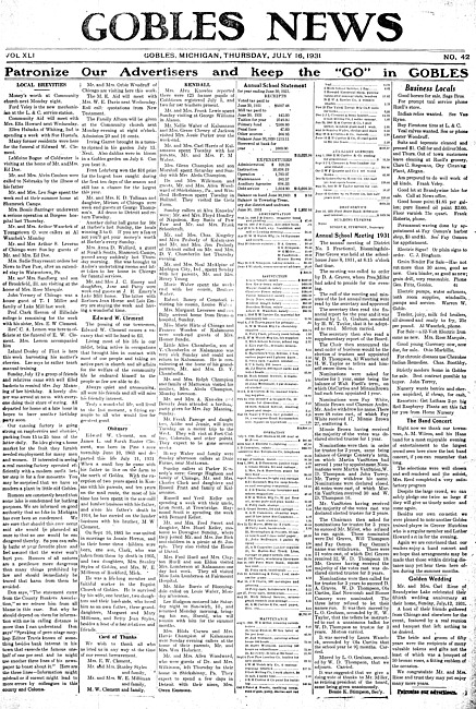 Gobles news. Vol. 41 no. 42 (1931 July 16)