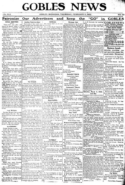 Gobles news. Vol. 42 no. 20 (1932 February 11)