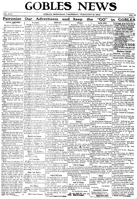 Gobles news. Vol. 42 no. 21 (1932 February 18)