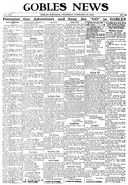 Gobles news. Vol. 42 no. 22 (1932 February 25)