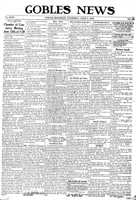 Gobles news. Vol. 35 no. 38 (1925 June 11)