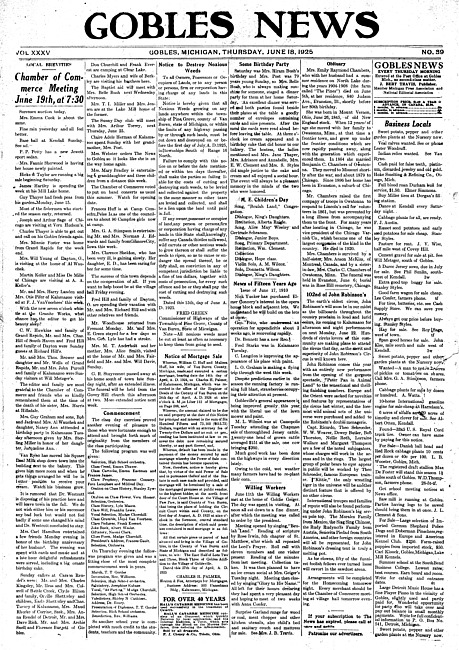 Gobles news. Vol. 35 no. 39 (1925 June 18)
