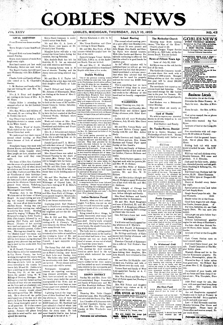 Gobles news. Vol. 35 no. 43 (1925 July 16)