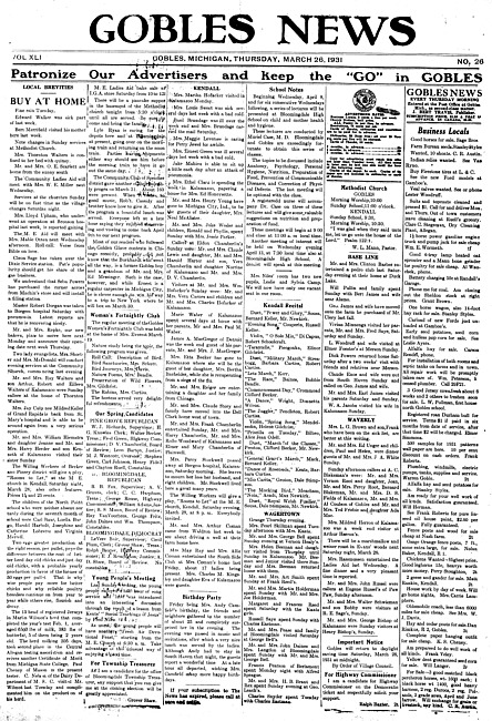 Gobles news. Vol. 41 no. 26 (1931 March 26)