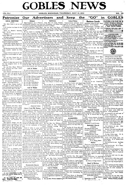 Gobles news. Vol. 41 no. 33 (1931 May 14)